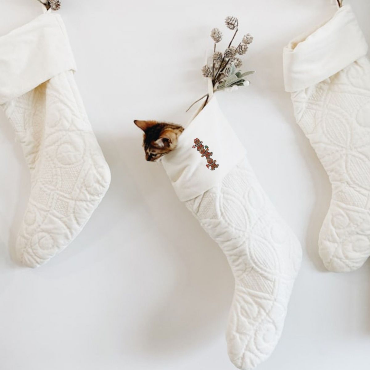 Bring festive charm to your holiday crafts with this adorable embroidered patch featuring gingerbread boys and girls stacked shoulder to shoulder in a playful tower. One gingerbread holds a Christmas tree, another a classic red-and-white candy cane, and the top proudly shows off a peppermint. Perfect for decorating Christmas stockings, hats, aprons, or festive apparel, this holiday patch adds a whimsical touch to any project. Easy to apply with a household iron, it’s a sweet way to spread seasonal cheer.