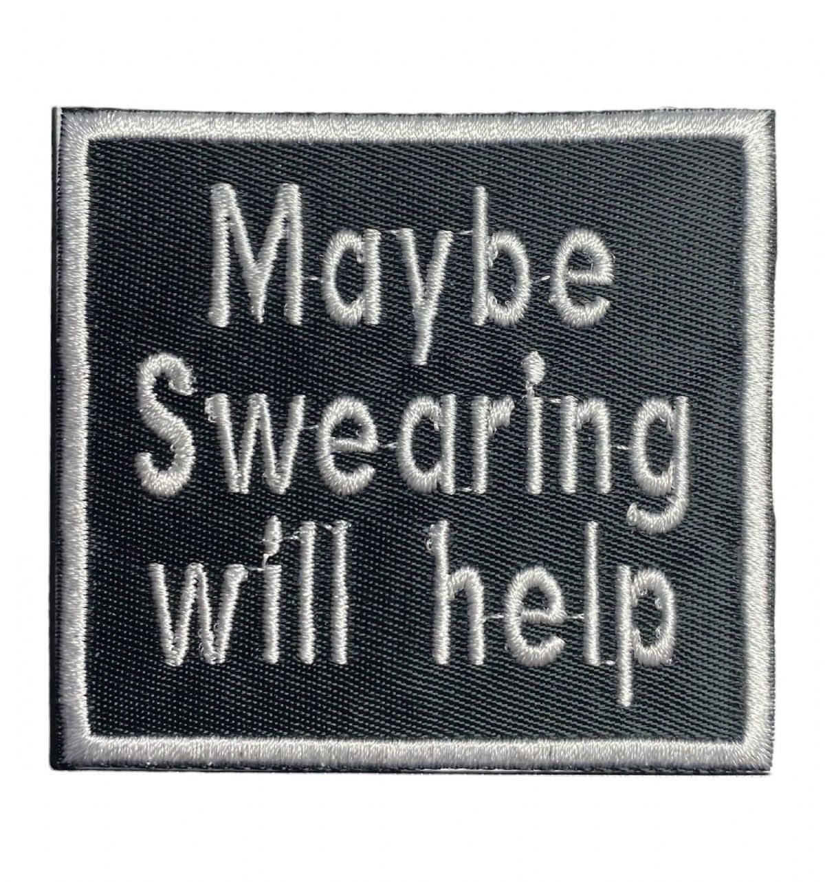 A relatable, sarcastic embroidered phrase patch for anyone who knows that a few well-placed curse words can be therapeutic. Clean black background with white stitching makes it perfect for hats, jackets, bags, or patch bars.