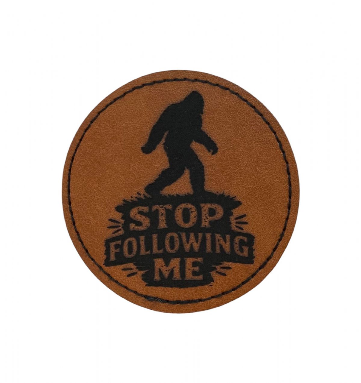 A bold round patch featuring a Bigfoot silhouette and playful warning text, perfect for hats, jackets, backpacks, and outdoor gear with a sense of humor.