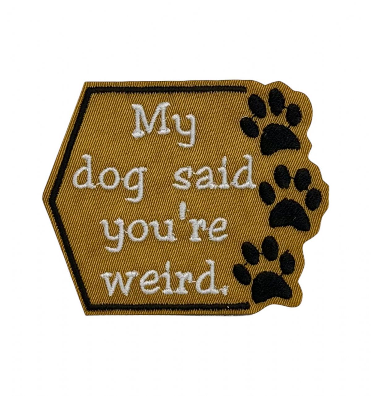 My dog said you're weird, paw print embellishment, embroidered iron on patch.