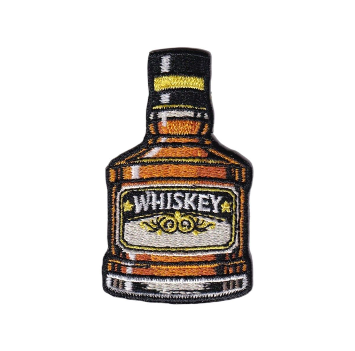 Bourbon whiskey bottle, embroidered iron on patch.